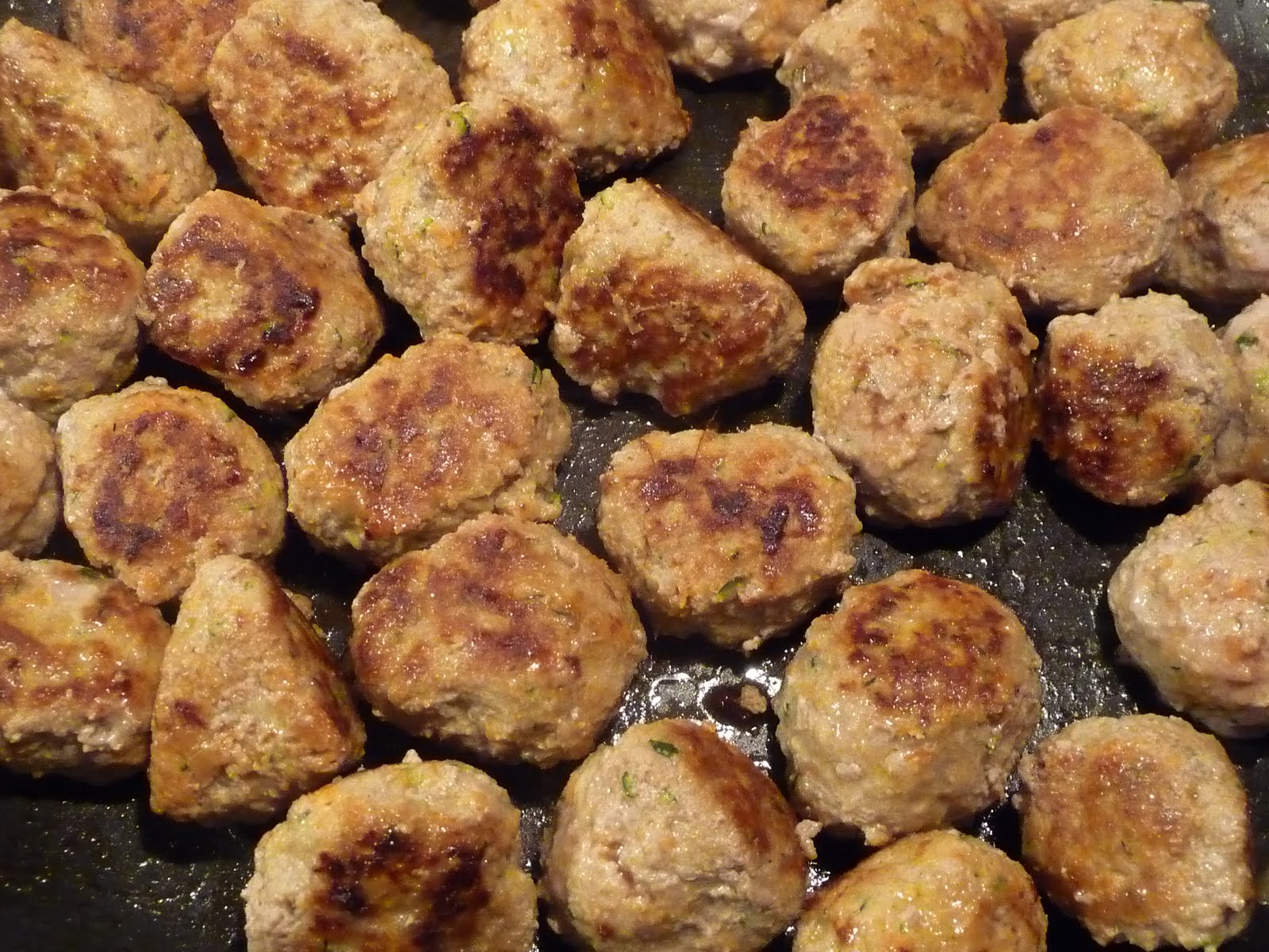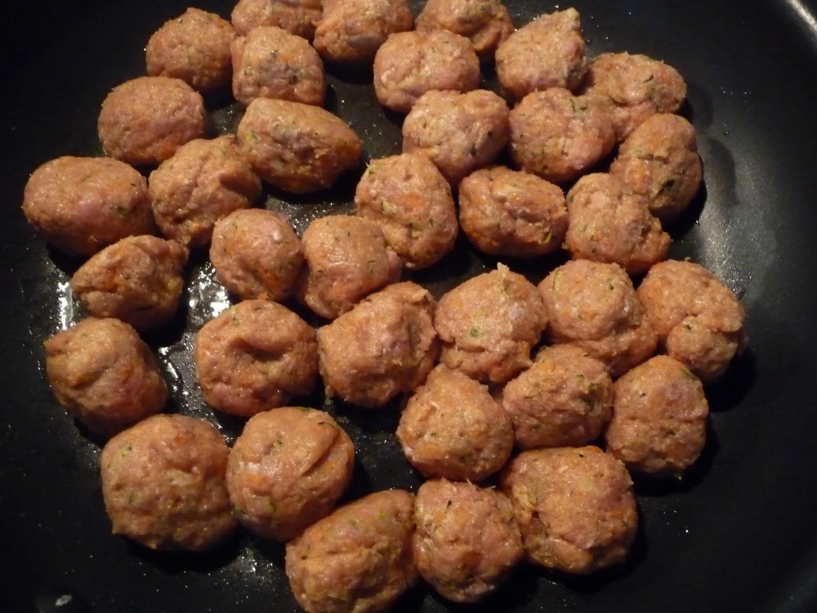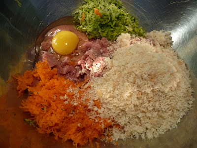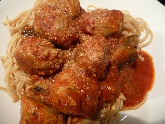 When I fancy Spaghetti and Meatballs for dinner, but want it to be as healthy as possible, I cook whole grain spaghetti and use this recipe for Turkey Meatballs. It's adapted from the turkey meatloaf recipe on my "Let's All Cook" website and the resulting meatballs are so moist and juicy, you won't believe they're made from 100% ground turkey. Everyone knows that ground turkey is low in fat, so the recipe needs something to add moisture; this is where the secret ingredients come in - grated carrot and zucchini! So, as well as adding juiciness, you're adding fiber and nutrients - you don't need to mention this to the kids, they won't notice...